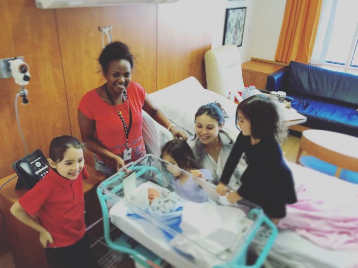 "Қыздарым інілі болды Аллаға шүкір ("У моих дочек появился братишка"), - подписала она фотографию из роддома.