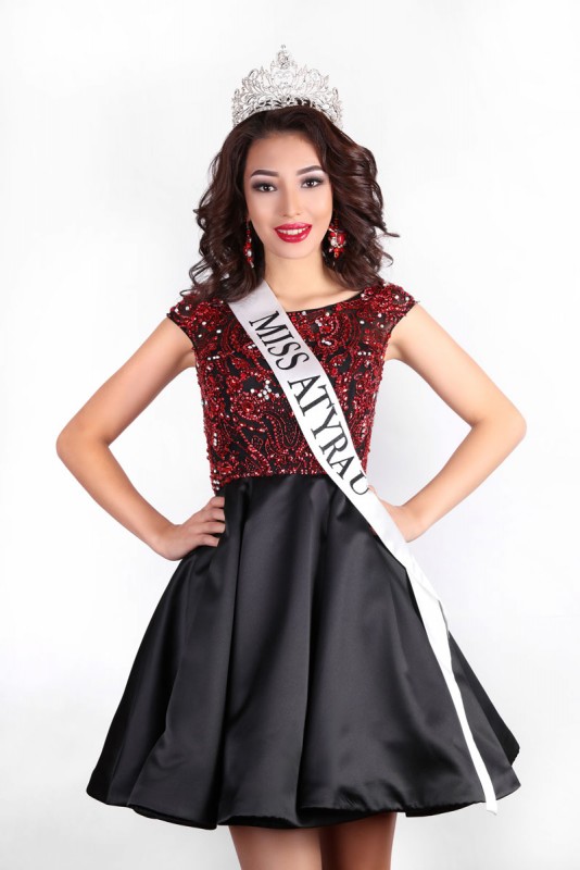 Айнур Шаймарданова, "Мисс Уральск", 18 лет. Студентка Западно-Казахстанского аграрного технического университета имени Жангир хана. Занимается спортом, народными танцами.