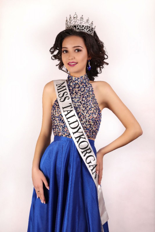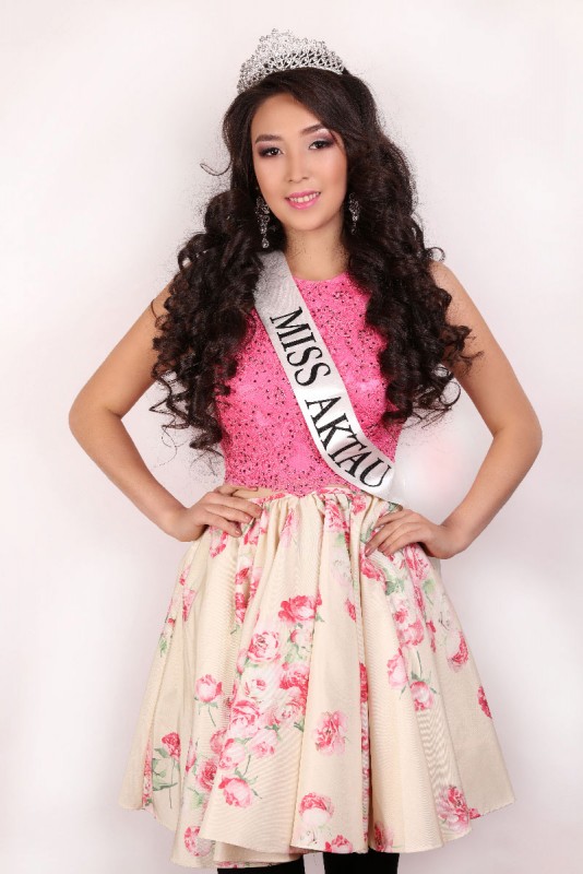 Аруна Сагатбекова, "Мисс Талдыкорган", 16 лет. Учится в школе-лицее № 5. Окончила музыкальную школу, занимается вокалом и играет на фортепиано.