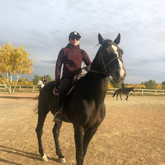 Танымал актер, тележүргізуші Тәуекел Мүсілім де өзге де жұлдыздар сияқты атқа мініп, таза ауада демалғанды жақсы көреді.
