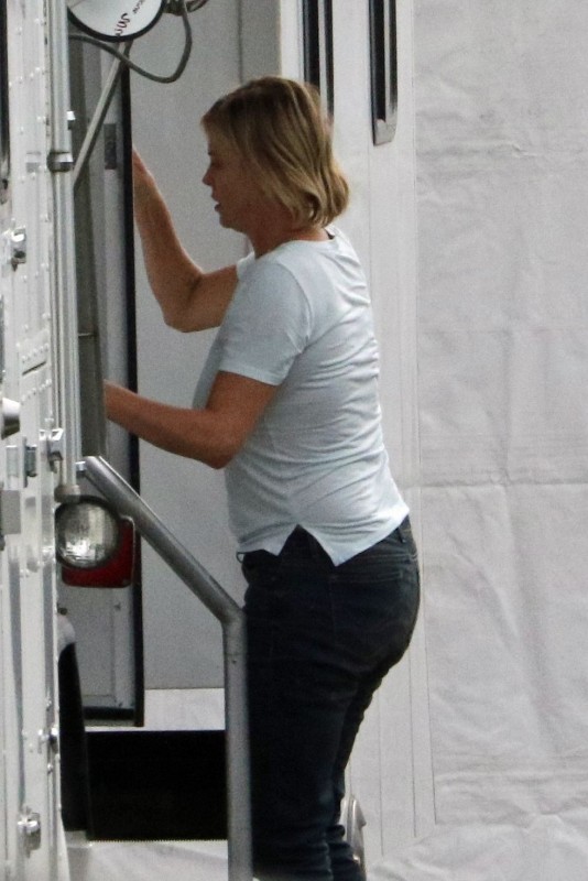 Работа над проектом началась в июне в Ванкувере, и фото, сделанные папарацци на съемочной площадке несколько дней назад, демонстрируют заметные перемены в облике Терон. По данным издания, 41-летняя актриса набрала 16 килограммов для наибольшей достоверности и соответствия своей героине.