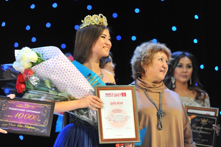 Наряду с главным трофеем конкурса - короной, Аина получила право представить Кокшетау на конкурсе "Мисс Казахстан-2017".