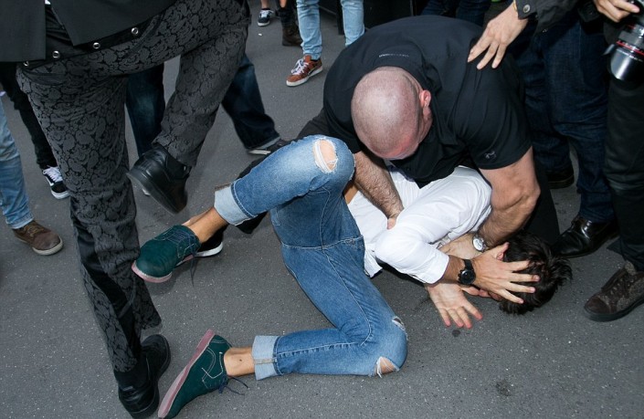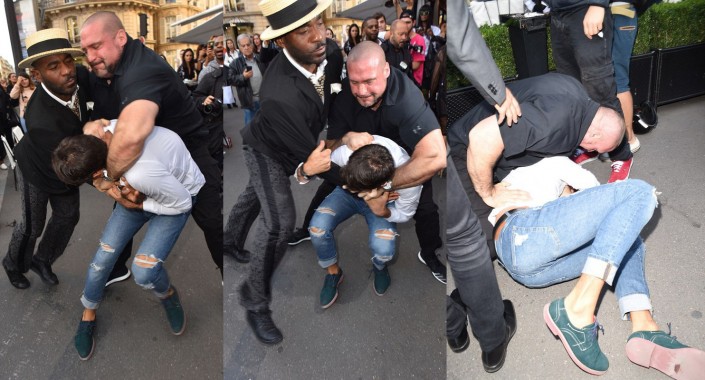 Когда Кардашьян вышла из автомобиля, Седюк подбежал к ней и поцеловал в "пятую точку". Все происходило в окружении журналистов и толпы зевак. Охранники среагировали быстро. Они оттащили хулигана от знаменитости, повалили на землю, а затем вывели за ограждение.