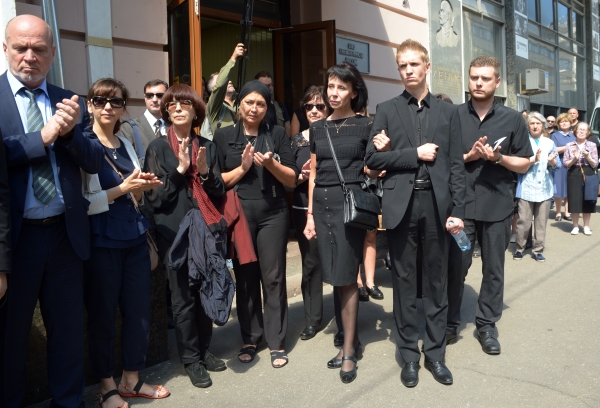 Вынесли гроб с телом артиста под аплодисменты поклонников и коллег.