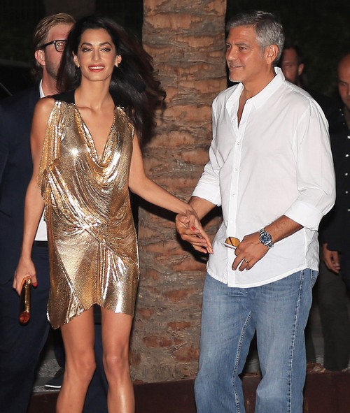 На вечеринке на испанской Ибице возлюбленная Клуни появилась в коротком золотистом наряде из струящейся ткани и тем самым привлекла внимание прессы. Столь пристальное внимание к Аламуддин объясняется тем, что известного адвоката привыкли видеть в классических костюмах и более скромных нарядах.