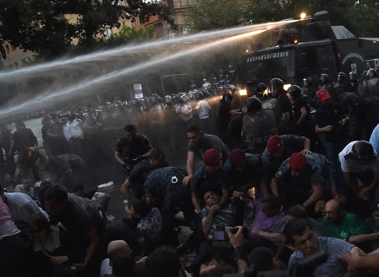 Сидячий пикет на проспекте Баграмяна силовики разгоняли с применением водометов. До этого полиция неоднократно предупреждала людей о незаконном характере мероприятия. Офицеры постоянно призывали несколько сотен молодых активистов вернуться на площадь Свободы и там, не создавая препятствий для работы столичного транспорта, продолжить свою акцию.
