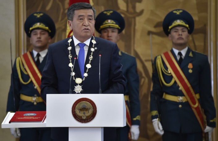 Сегодня, 24 ноября, прошла церемония инаугурации нового президента Кыргызстана Сооронбая Жээнбекова в государственной резиденции "Ала-Арча". Сначала Сооронбай Жээнбеков дал присягу народу Кыргызстана. Затем ему вручили удостоверение, нагрудный знак и штандарт главы государства. В это же время в центре столицы прозвучал трехкратный артиллерийский залп. После официальной церемонии Жээнбеков в сопровождении кортежа проследовал в Белый дом, где находится рабочий кабинет президента и работает администрация главы государства. На новое рабочее место Сооронбая Жээнбекова проводил теперь уже экс-президент страны Алмазбек Атамбаев.