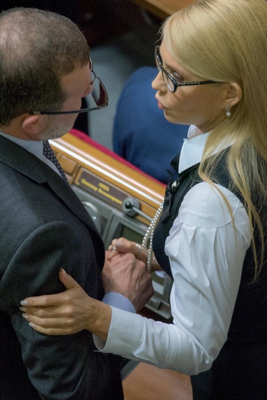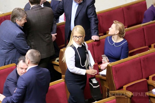 Как отмечают украинские СМИ, экс-премьер пришла в парламент без привычной косы на знаковое заседание Рады. Именно во вторник должна решиться судьба правительства Арсения Яценюка.