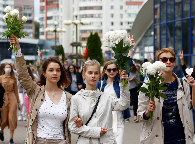 По данным Telegram-канала NEXTA Live, 250 белорусских женщин вышли в белом с цветами к Комаровке, чтобы выразить протест насильственным действиям силовиков и солидарность с пострадавшими мирными демонстрантами.