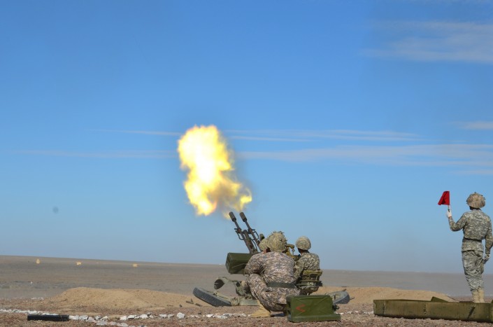 Так, в рамках совместных учений "Боевое Содружество-2017" на полигоне "Сарышаган" прошли боевые стрельбы расчетных отделений противовоздушной обороны. Боевые стрельбы были выполнены по реактивно-осветительным патронам увеличенной дальности РОБУД-50, заменяющих воздушную мишень условного противника, по наземным установленным мишеням "бронетранспортер" и "условный зависающий в небе вертолет".