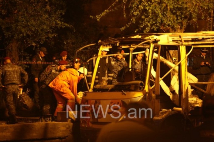 Мощный взрыв прогремел в пассажирском автобусе в Ереване поздно вечером 25 апреля. По последним данным, как сообщает РИА Новости, в результате погибли два человека, еще несколько получили ранения. В момент взрыва в салоне находились девять пассажиров (среди них трое подростков) и водитель (он остался жив). Все пострадавшие являются гражданами Армении.