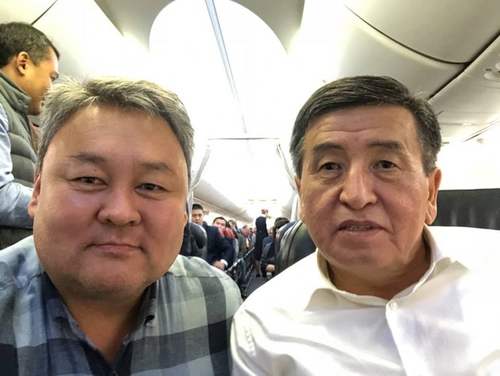 Политолог Темирлан Сарлыкбек уулу сделал селфи с президентом на борту самолета и отметил, что тот удивил всех своей простотой. "Он рассказывал про эпос "Манас", исторических героев и события, а также сообщил о начале нового большого проекта", - написал политолог в своем Facebook.