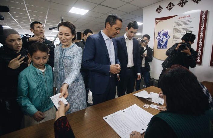 Чуть позже проголосовал действующий президент КР Алмазбек Атамбаев и первая леди Раиса Атамбаева. Свои голоса они отдали в избирательном участке № 1209, расположенном в профессиональном лицее № 5 города Бишкек.
