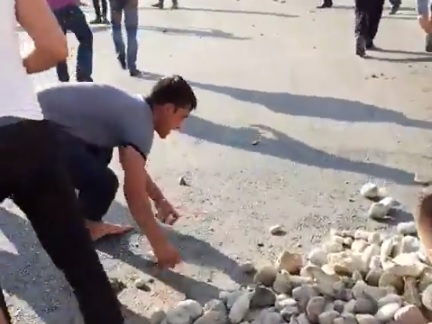 Тұрғындар тас лақтырып жатқан сәт. © Видео кадры