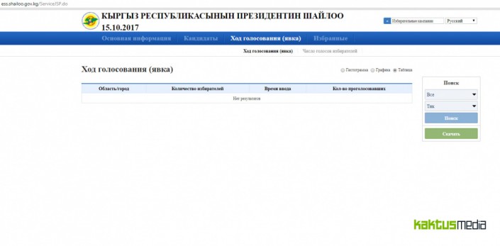 За день до начала выборов президента Кыргызстана на сайте ЦИК страны ess.shailoo.gov.kg странным образом появились первые результаты голосования, сообщает Kaktus.media.