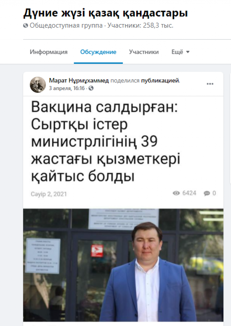 В Казнете распространяется сообщение о том, что 39-летний сотрудник Министерства иностранных дел Кыргызстана Бахтияр Шакиров скончался на второй день после получения вакцины против COVID-19. В Минздраве страны опровергли слухи о том, что умерший получал какую-либо вакцину от коронавируса, передает Tengrinews.kz со ссылкой на StopFake.