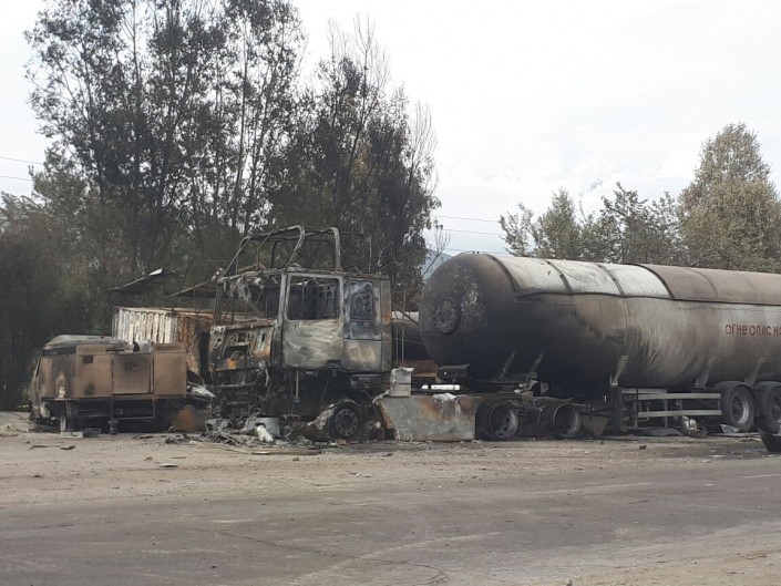 В результате мощного взрыва на частной автозаправочной станции в Иссык-Кульской области 2 человека погибло, 8 пострадали. Также, по данным МЧС КР, полностью выгорело пять автомобилей, включая два крупногабаритных бензовоза. Ранее очевидцы происшествия сообщали, что пожарные машины прибыли на место ЧП без воды. Но как пояснили в МЧС Кыргызстана, газозаправочная станция абсолютна не была приспособлена к тушению огня. Пожарным приходилось закачивать воду из ближайших арыков. В результате тушение пожара затянулось на три часа.