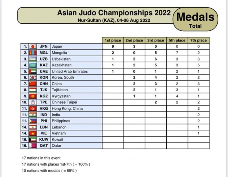 Казахстан занял четвертое место в медальном зачете ЧА-2022 по дзюдо Фото: ©fdk.kz