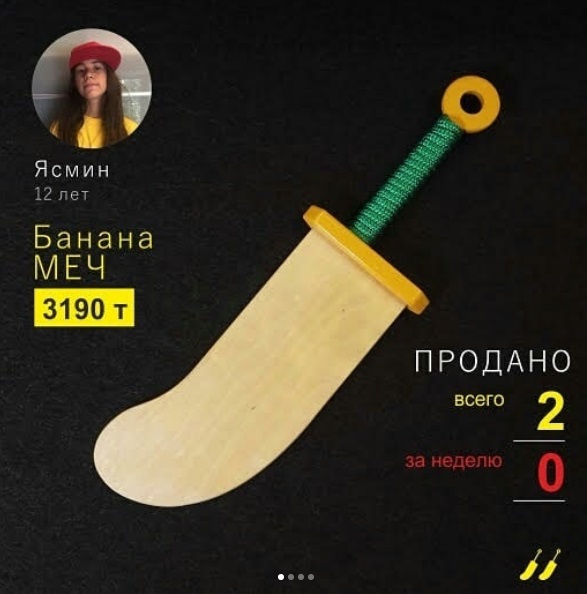 "Я, как производитель детского товара в категории детское оружие, провел конкурс, где нужно было создать дизайн меча, изготовить макет из картона и сделать видеопрезентацию, в которой нужно было рассказать о своей разработке и о ее преимуществах. Из всех участников мы выбрали четырех. По четырем эскизам мы создали реальный продукт, запустили партию, сертифицировали и выложили на витрины 10 торговых точек по Казахстану, пять из которых находятся в Алматы. В течение месяца мы проводили статистику по продажам и выявили, что лучшим стал меч 10-летнего Михаила", - рассказал Чингиз Шакуров.
