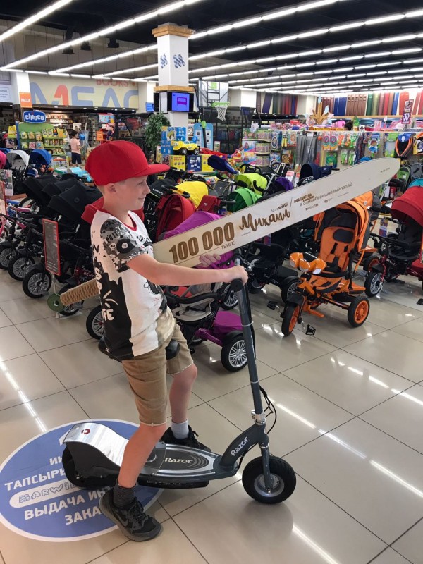 Победитель получил сертификат на 100 тысяч тенге. На эти деньги он выбрал электросамокат.