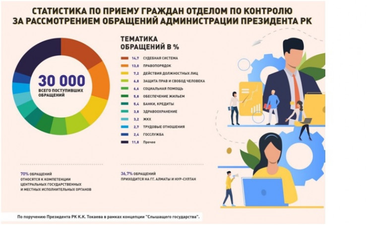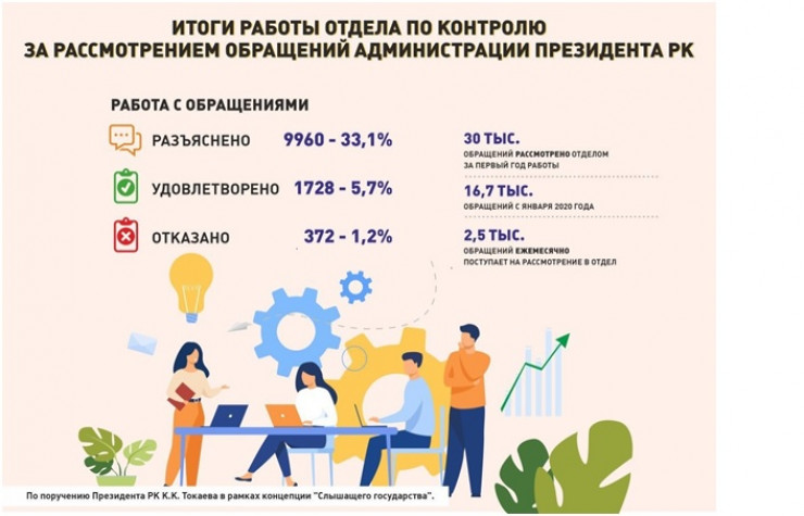 С каждым днем государство становится все ближе к рядовым казахстанцам. Для того, чтобы еще уменьшить это расстояние, 22 июля 2019 года указом Главы государства в Казахстане был создан отдел по контролю за рассмотрением обращений к администрации Президента Республики Казахстан. Ежедневная работа отдела принесла свои плоды – за год существования общественной приемной было рассмотрено свыше 30 000 обращений. В среднем каждый месяц более 2500 граждан обращались в приемную за поддержкой разного рода.