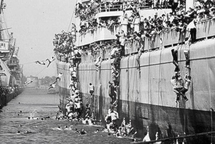 Бриндизиге қашып барған албаниялықтар. Фото: twitter.com/FactInteres