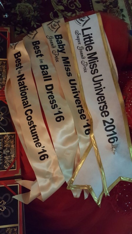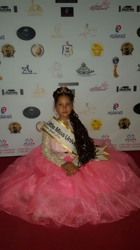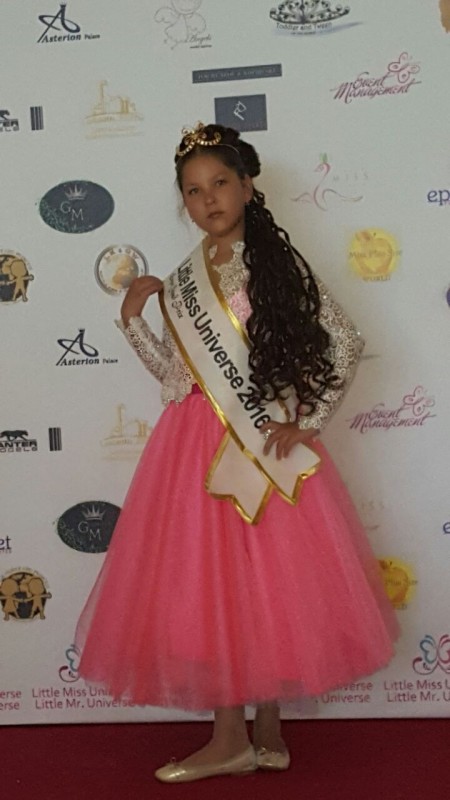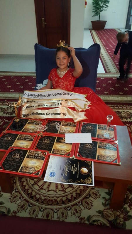 Алматинка стала обладательницей золотой короны и титула Super Grand Prix Little Miss Universe 2016. Помимо этого титула, она получила специальные премии Best in National Costume, Best in ball dress, Baby Miss Universe Grand Prix, а также приглашение принять участие в международном детском конкурсе Little King&Queen World 2016, который пройдет в августе в Болгарии.