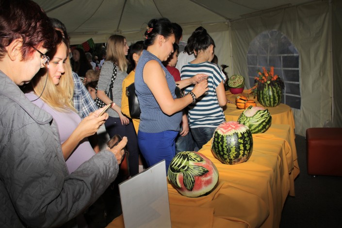 Посетителей ждали конкурсы, ярмарка арбузов, выступления музыкальных и танцевальных групп, мастер-класс по карвингу и приготовлению арбуза.