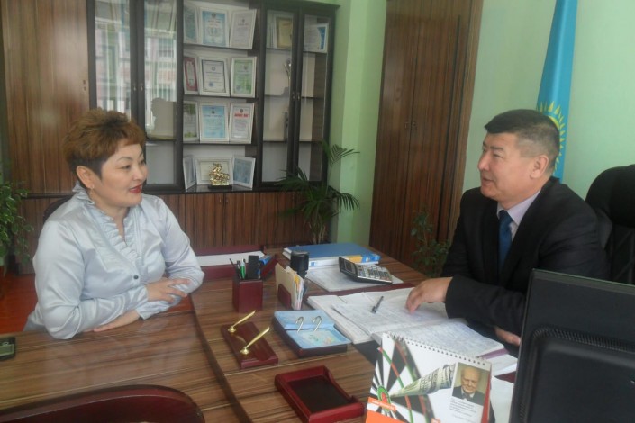 "Қазығұрт" орта мектебінің директоры Ерхан Нұрсейітовпен