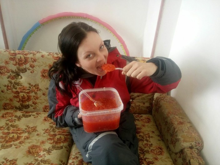 Сегодня Алина работает в дрессировочном центре Алматы и мечтает, что осенью опять поедет на Камчатку. "Я там оставила свои вещи и подарки, сувениры и оленью шкуру, которые были перегрузом, увезти тогда было невозможно. Хочу привезти невероятно вкусную рыбу. Вообще там очень вкусная еда, мне понравилась оленина, пенженские вездеходчики угощали лосятиной, пробовала кожу гренландского кита, которую все там едят, обмакивая в чесночный соус. Слегка металлический вкус у кожи, необычный, но пожевать ее прикольно", - вспоминает она.