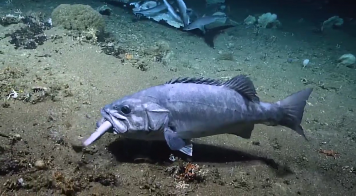 Целиком проглотивший акулу огромный окунь попал на видео © oceanexplorer.noaa