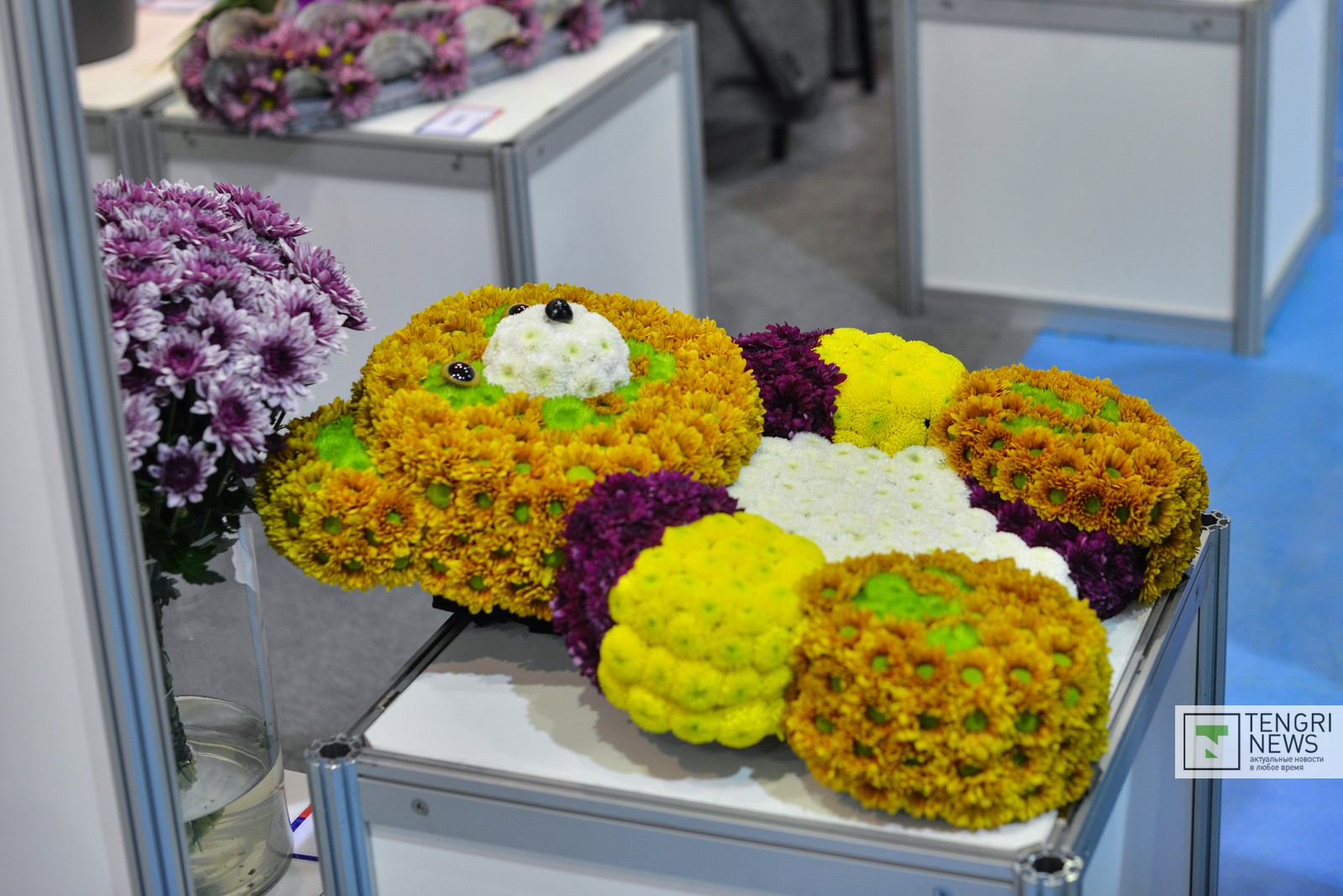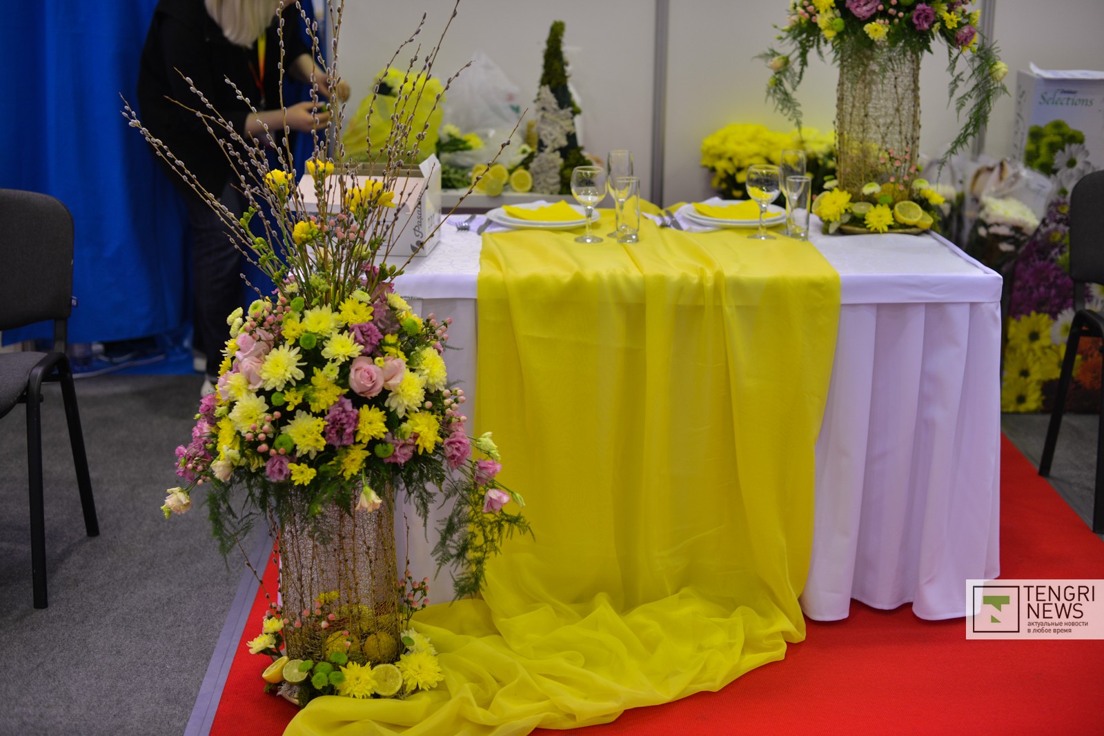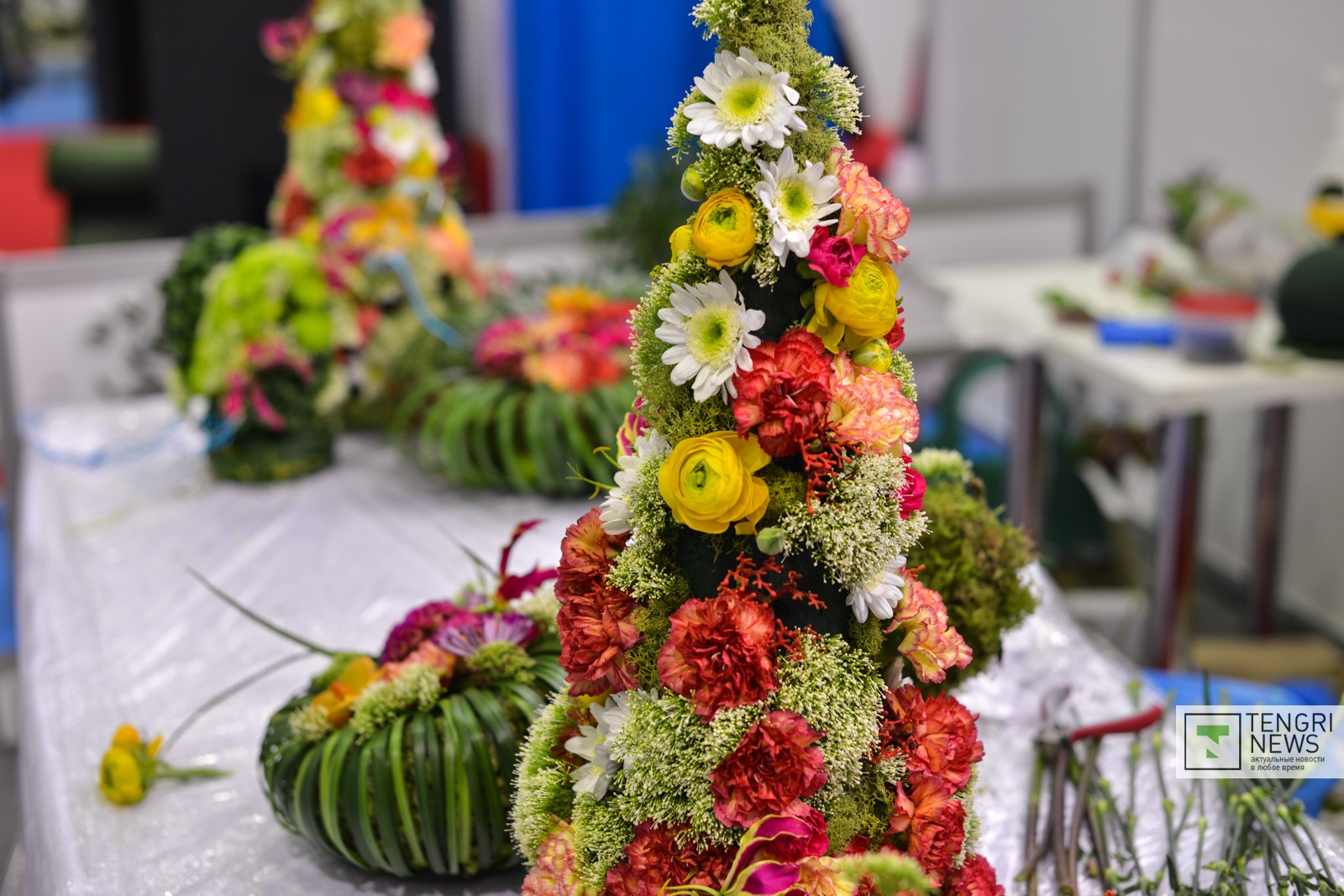 Представители одной из флористических компаний-участниц рассказали, что все цветы для композиций они заказали из Голландии. Узнали о конкурсе за месяц до начала выставки. "Нарисовали эскиз и заказали цветы, чтобы примерно к этой дате они были доставлены.Сейчас цвет марсала - темно-бордовый - очень модный, и мы решили этот тренд поддержать. У нас здесь анториумы, гвоздики, гортензия, которая считается одним из самых дорогих и красивых цветов, и много всякого мелкоцвета", - рассказала флорист Сайина Тайгозина. "Эта композиция будет стоить больше 100 тысяч, здесь цветов на почти 100 тысяч тенге", - также рассказала она.