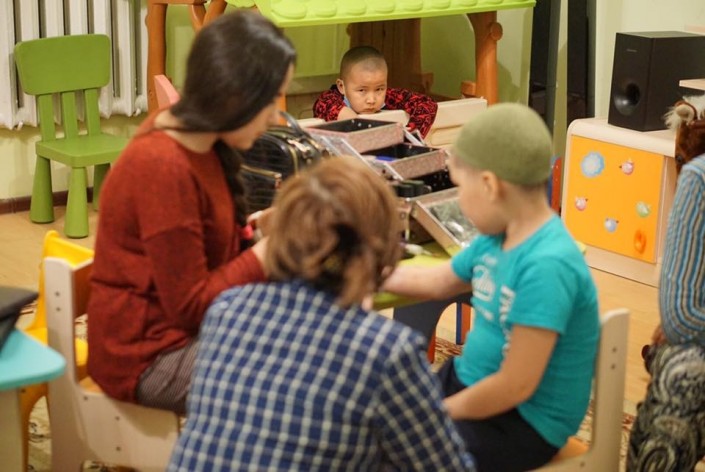 "Когда к нам в отделение поступает ребенок, мы сразу же получаем двух пациентов - это ребенок и его мама. Причем с ребенком всегда легче найти общий язык, нежели с мамой. Потому что женщины поступают, как правило, в состоянии очень глубокой депрессии. Хотя мы и пытаемся донести, что у нас очень хорошие результаты лечения, что они должны быть готовы к выздоровлению. Но узнать диагноз - это уже стресс. Поэтому мамы находятся у нас в плачевном состоянии. С ними работают психологи, и мы за столько лет работы сами стали психологами. Мы уже чувствуем, к какой маме какой подход нужен. И хотим хотя бы на 10-15 минут отвлечь их от этого", - рассказывает заведующая детским отделением КазНИИОиР Анна Быковская.