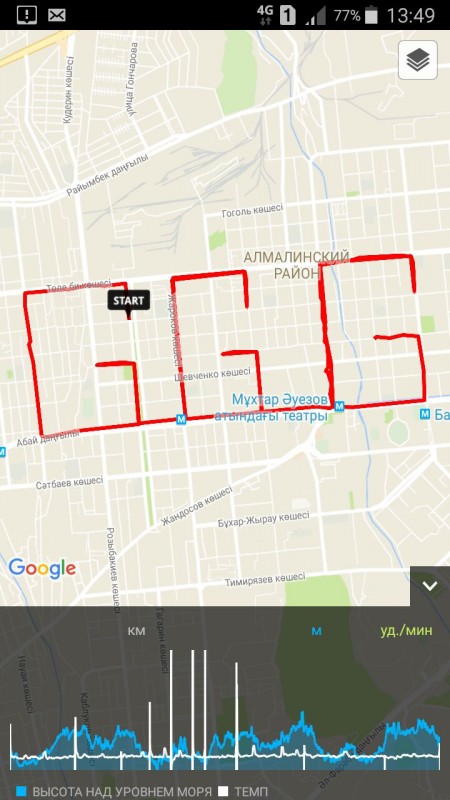 Напомним, в конце августа трое жителей Алматы пробежали полумарафон, чтобы написать на карте Алматы "Алға GGG".