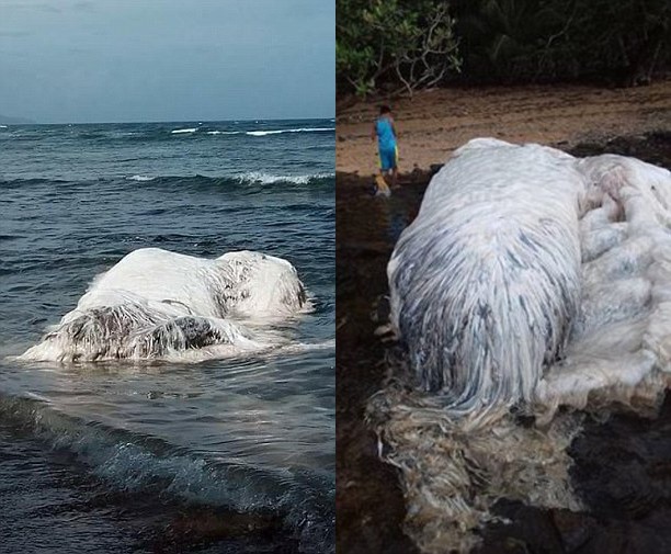 На побережье Филиппин рыбаки обнаружили странное существо внушительных размеров. Монстр длиной более шести метров, весь покрытый белыми волосами, не был похож ни на один из известных видов морских животных, сообщает The Telegraph.