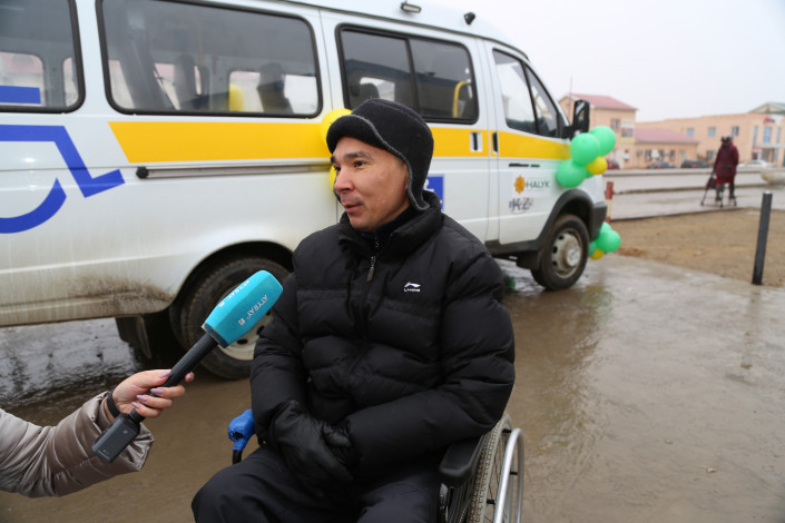 С начала проекта в регионы были переданы 36 спецавтомобилей общей стоимостью свыше 336 миллионов тенге. Каждый из них оборудован подъемными устройствами для инвалидных колясок, располагает салоном с круговым остеклением, с правой сдвижной и задними распашными на 180 градусов дверями.
