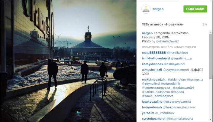 Фото Шоула Шварца (Shaul Schwarz) из Караганды появилось Instagram National Geographic, передает корреспондент Tengrinews.kz.
