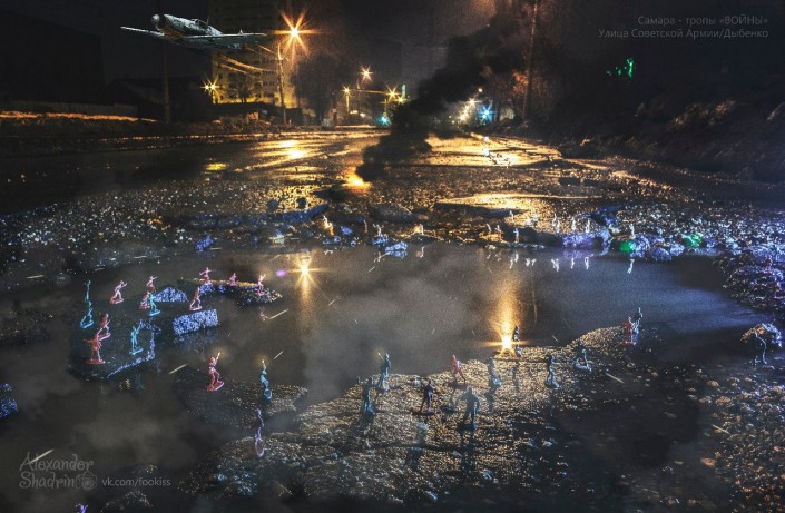 Фотографы из Самары превратили разбитую дорогу в поле боя для игрушечных солдатиков, пишет Lenta.ru
