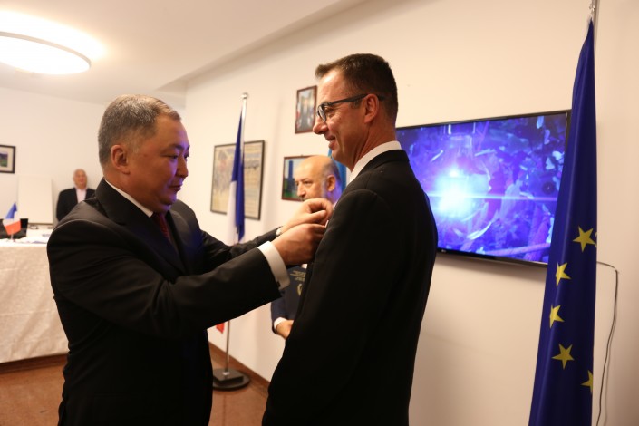 Также начальник ДВД вручил благодарственное письмо Чрезвычайному и Полномочному послу Франции в Казахстане Франсису Етьену.
