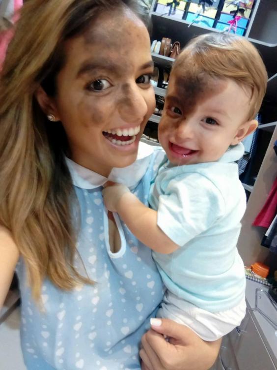 Жительница бразильского города Касерес попросила нарисовать на своем лице такую же огромную родинку, как у ее ребенка. Об этом сообщает The Independent.