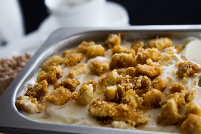 Среди всего разнообразия блюд улыбку вызывает десерт от грузинского ресторана, выполненный в форме хинкали.