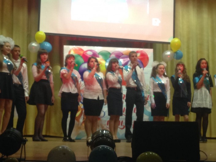 Одиннадцатиклассник Алексей Деревянко (в центре) среди выпускников - девятиклассников. Фото руководителя Дома культуры аула Турген Сауле Бисикеевой.