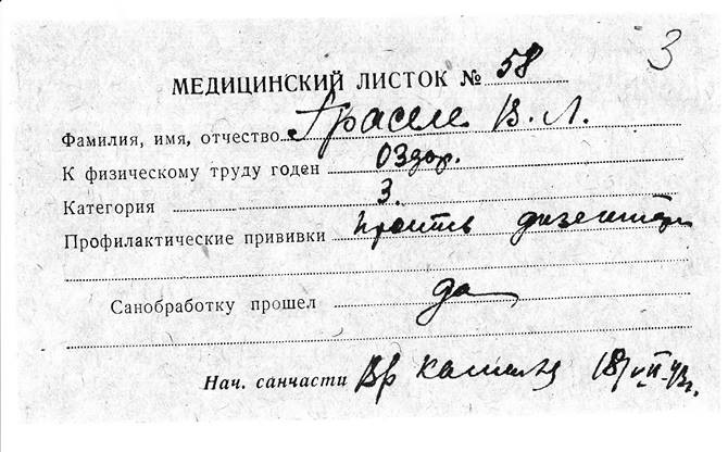 Акт о захоронении умершего военнопленного.