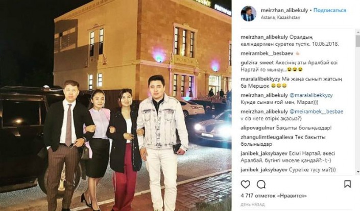 "Сфотографировались с невестами из Уральска. 10.06.2018", - подписал снимок Мейржан Алибекулы.