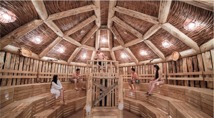 "Ханская сауна" - популярна своей уникальностью церемонии сидения на троне, на самой высокой точке, где, соответственно, и самая высокая температура - до 90 градусов.
