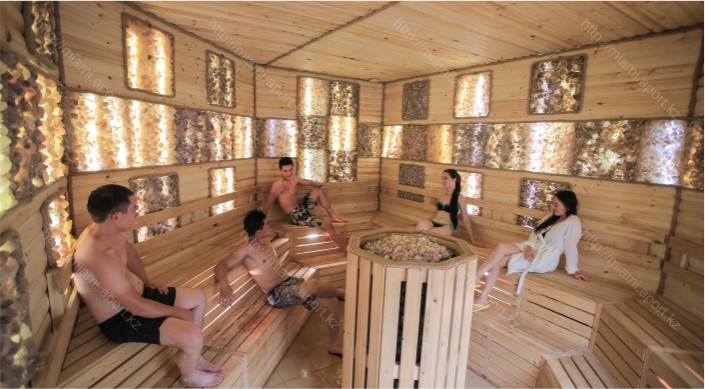 Чудодейственный эффект саун усиливается в "Соляной бане" благодаря тому, что ее стены отделаны блоками гималайской соли.