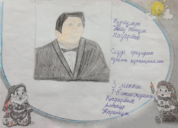Каким Назарбаева видят дети Нарисованный портрет Нурсултана Назарбаева. akorda.kz ©