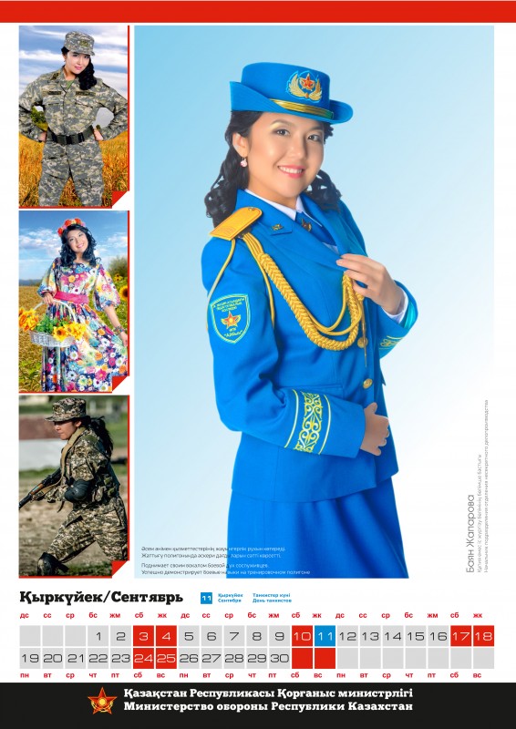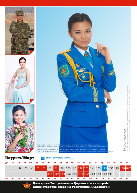Календарь, составленный по итогам конкурса красоты среди сотрудниц Министерства обороны "Батыр Арулар", опубликован тиражом в тысячу экземпляров. О том, что каждая из 12 финалисток украсит страницы определенного месяца специализированного календаря на 2016 год, было объявлено сразу после старта конкурсного интернет-голосования.