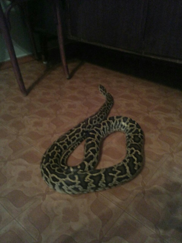 Житель Караганды приручил тигрового питона и живет с ним в одной квартире, сообщает корреспондент Tengrinews.kz.