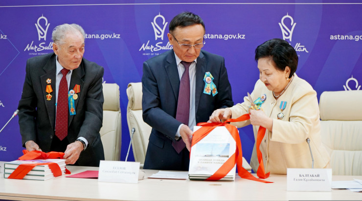 Сегодня в акимате Нур-Султана состоялась торжественная презентация книги "Великая Победа в памяти навеки". На четырехстах страницах богато иллюстрированного издания увековечен беспримерный подвиг акмолинцев на Великой Отечественной войне, передает официальный сайт столичного акимата.